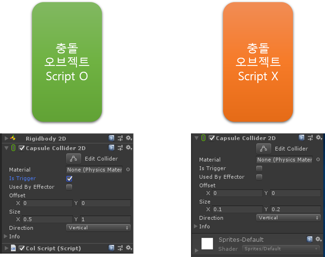 Trigger함수가 있는 스크립트를 컴포넌트로 가지고 있는 게임오브젝트의 IsTrigger 체크