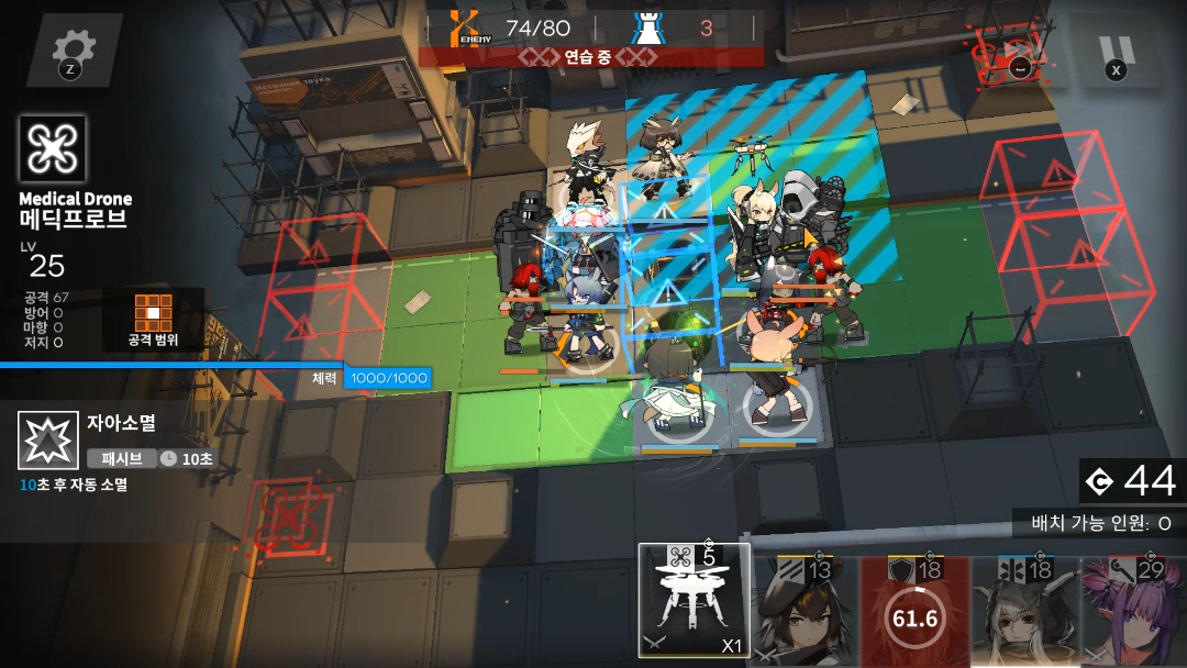 - 드론 3마리가 쌓여서 HP가 부족해지기 전에 힐러 스킬 사용