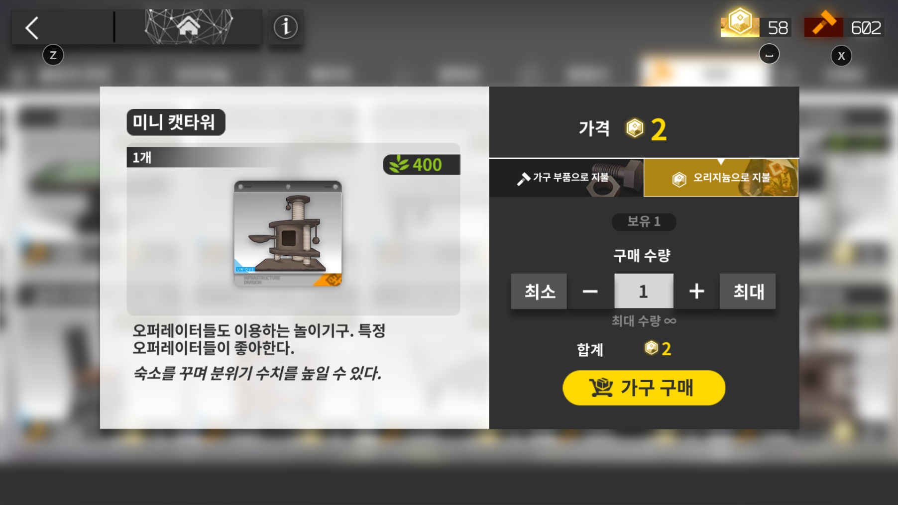 레벨이 오를수록 효율이 좋아지는 순 오리지늄으로 이성 회복입니다.