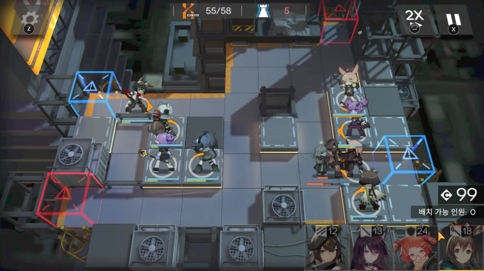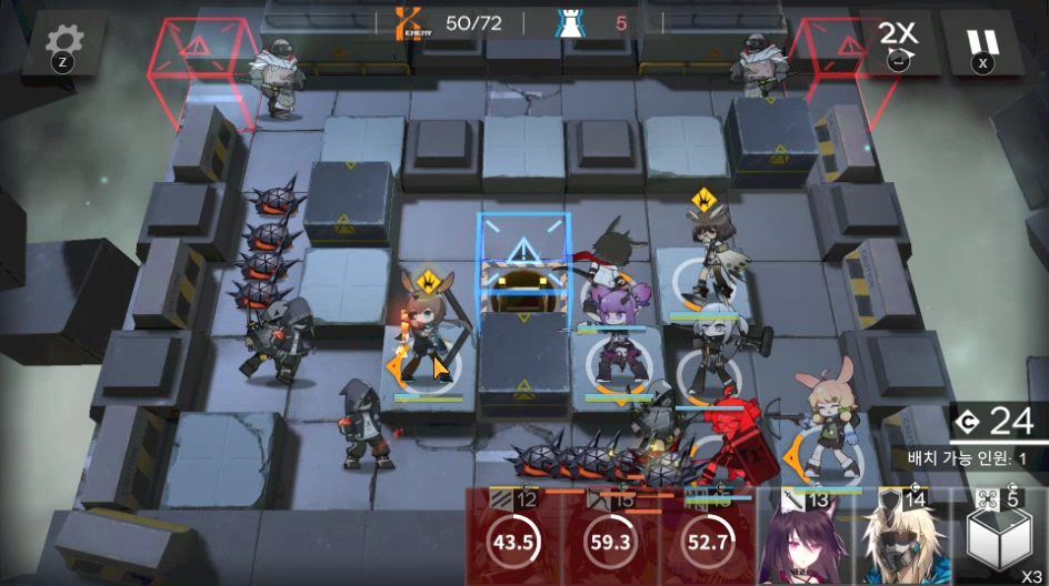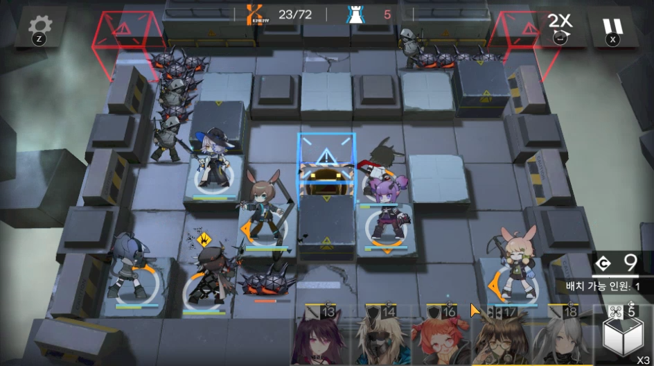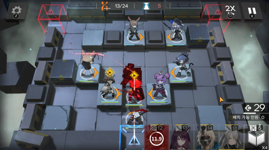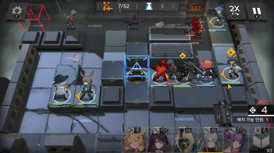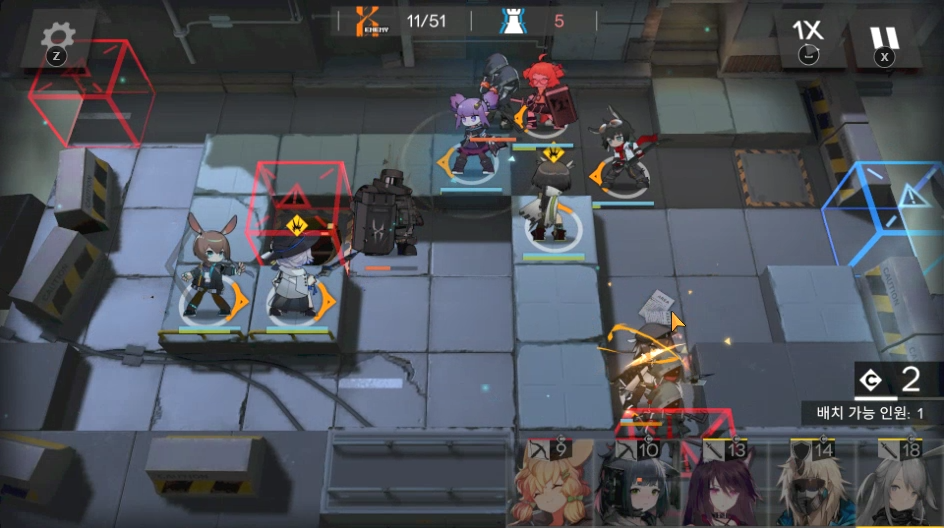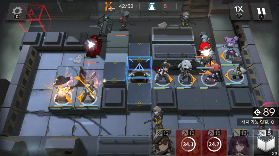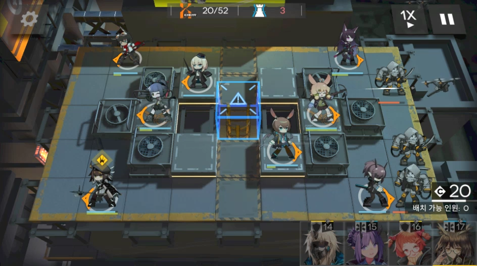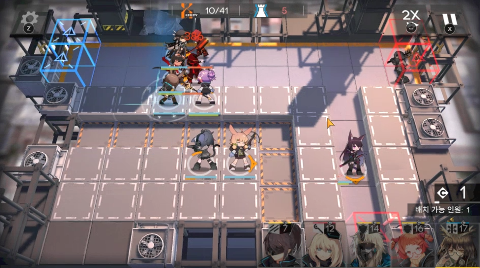 첫 번째 파트 ) 쿠리어 / 오키드 / 플룸 / 아미야 / 비글 순으로 소환 (윗라인 왼쪽, 아래라인 오른쪽보고)