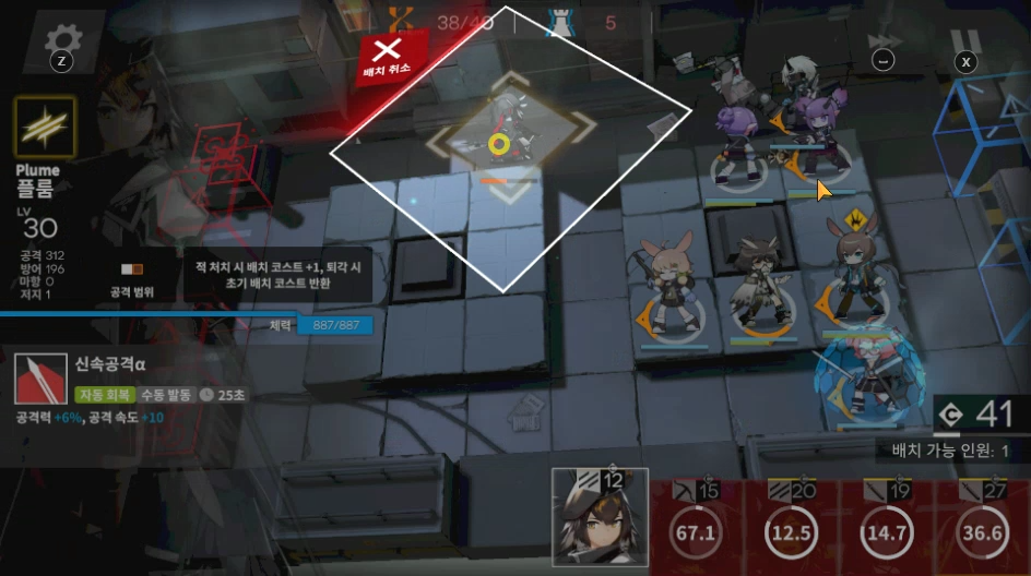두 번째 파트 ) 플룸 소환 해제 후 멜란사 소환, 적 한마리 빠질텐데 코스트 모아서 느와르 코르네 소환
