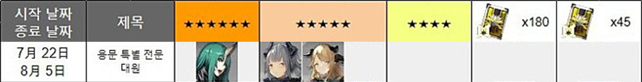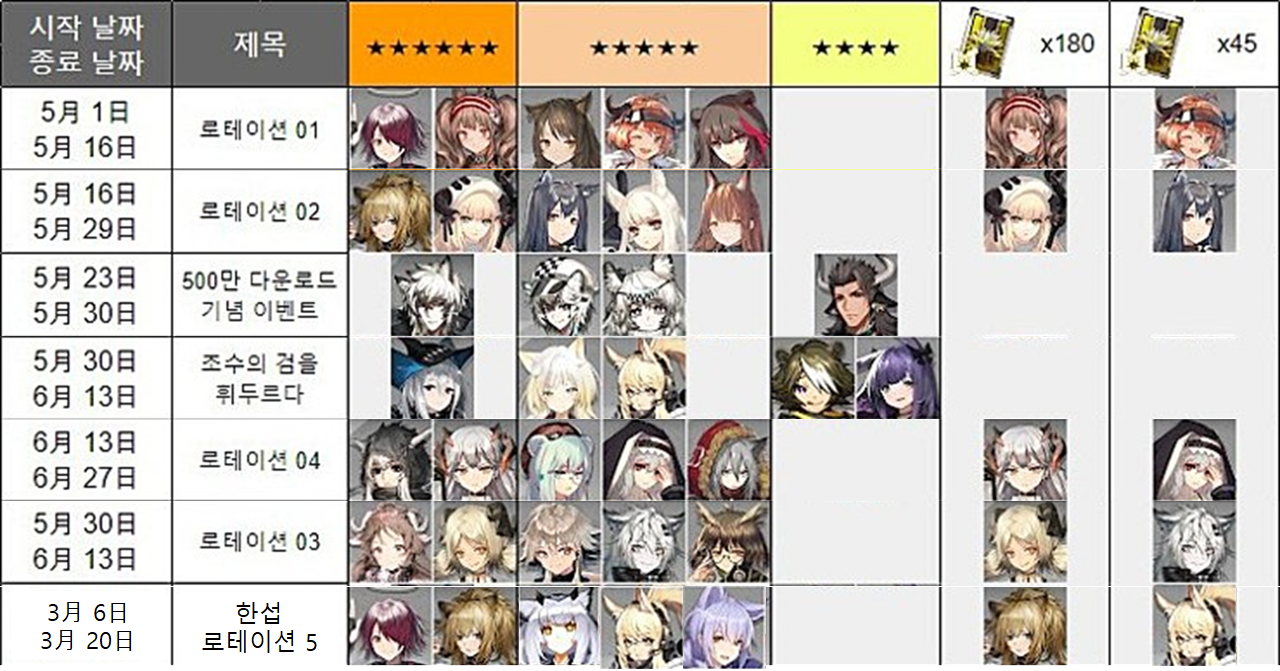 ㅁ 로테이션 표(였던 것) ※ 이벤트 픽업은 참고 가능